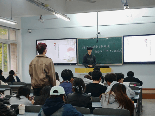 班会围绕“敬老爱亲”主题,设计了“话题导入—内涵解读—互动分享—行动倡议”四个环节。主持人通过提问与短片播放,引发学生对亲情的深度思考;随后结合“黄香温席”等传统典故与“云端尽孝”等现代案例,深入解读孝亲文化的内涵与时代演变,并且分析了现在存在“孝道异化”问题,通过对学生的提问,引导学生走出“等成功后再尽孝”等认知误区。