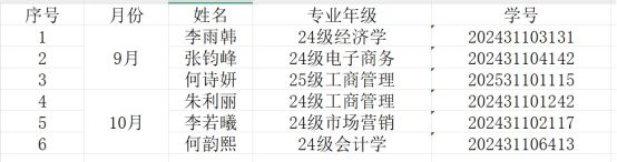 为充分发挥易班平台在学生思想引领、学风建设及校园文化传播中的重要作用,鼓励我院学生积极参与易班网络社区建设,营造健康向上的网络育人氛围,根据《经济管理学院本科学生综合素质评定表(2025版)》,经个人申报、班级推荐、学院易班工作站审核及综合评议,现确定2025年9月、10月“易班之星”人选,具体名单公示如下: