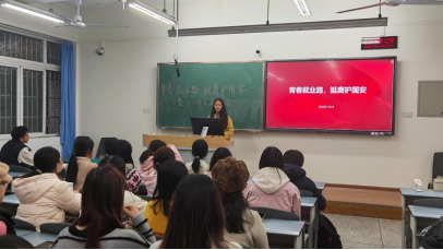 2025年11月13日下午,我院2025级国际经济与贸易专业召开十一月主题班会,围绕“青春就业路·挺膺护国安”主题,创新融合团日活动精神与专业发展指引。班会由团支书夏思瑜主持,专业全体同学参与。