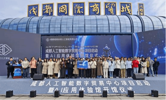 11月18日,成都人工智能数字贸易中心项目启动暨AI应用体验馆开馆仪式在成都国际贸易城中心广场正式举行。本次活动由成都成商未来人工智能有限公司牵头组织,各界政企领导、头部企业代表,以及西南石油大学等成都市多所学校的师生代表齐聚现场,共同见证人工智能与数字贸易融合发展的新起点。