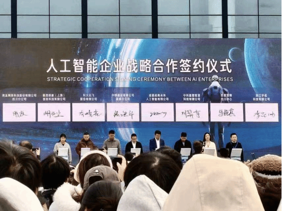 仪式以机器人舞蹈表演开场,迅速点燃现场氛围。成都成商未来人工智能有限公司董事长孙正川在致辞中明确项目定位:将打造集人才储备、项目孵化、企业落地于一体的产业闭环,推动人工智能技术从实验室走向市场应用。哈尔滨工业大学何道敬教授随后带来“右脑”情感大模型的主题分享,详解这一自主可控技术在情绪关怀、人机交互等领域的创新价值,为现场嘉宾展现了AI技术的人文温度。八大企业战略合作签约、校企合作签约及授牌的完成,标志着政产学研用的协同链路初步打通;总规模30亿元的“成都成商未来数智创业投资合伙企业”基金正式发布,将为优质数智项目提供资本助力。来宾有序进入AI应用体验馆,沉浸式感受智能交互、数字贸易等场景的技术落地成果。