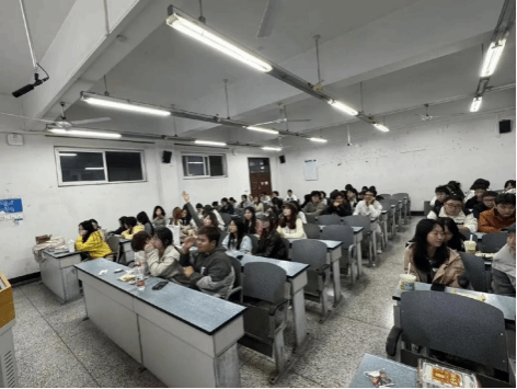 班会现场氛围温馨浓厚,班委们精心设计了丰富多样的环节。班委向同学们分发了重阳糕,供大家品尝,同时通过 PPT、短视频等形式,向同学们讲解重阳节的起源、习俗与文化寓意,从登高望远、插茱萸到饮菊花酒、敬老祈福,一个个传统习俗背后的故事让同学们听得津津有味。在 “我与长辈的温暖瞬间” 分享环节,同学们踊跃发言,讲述与长辈相处的点滴往事,有的分享奶奶无微不至的照顾,有的回忆与外婆共同度过的温馨时光,真挚的话语打动了在场每一个人。