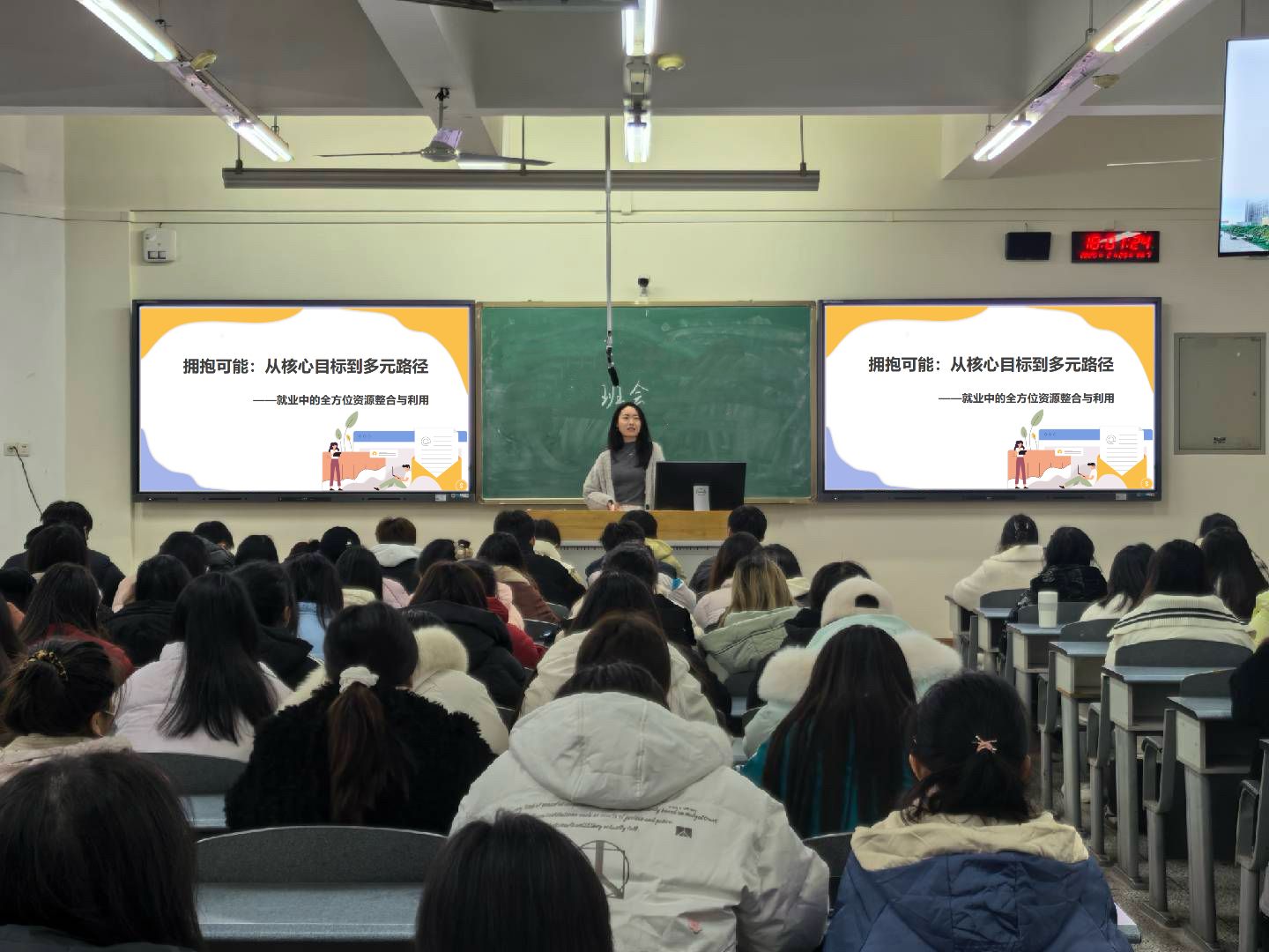 为应对当前严峻就业形势,引导学生科学规划职业路径、整合就业资源,11月29日晚,2022级经济学与电子商务专业于博学楼B502开展“拥抱可能:从核心目标到多元路径”就业主题班会。会议由辅导员主持,全体求职同学参与,围绕就业压力应对、个人能力挖掘与岗位拓展策略展开深入交流。