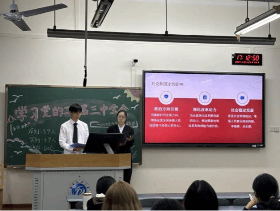 活动中,团支部书记系统阐释了全会的重大意义与核心精神,重点解读了《中共中央关于进一步全面深化改革、推进中国式现代化的决定》中提出的改革方向与战略部署。她强调,全面建成社会主义现代化强国是当前的中心任务,号召同学们深刻认识自身的历史使命。全体成员共同观看了专题学习视频,进一步深化理解。团支书结合个人学习体会表示:“党的二十大擘画了以中国式现代化推进民族复兴的宏伟蓝图。”并激励大家以奋斗姿态践行青春使命。