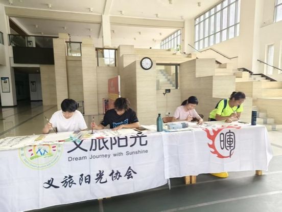 明志楼内的笔墨互动,既是初晖诗社“以诗为舟”的文化实践,也是义旅阳光协会“爱在路上”的公益延伸。两个社团以青春之笔,在文化与公益的交汇点上,写下了校园社团协同育人的生动注脚。