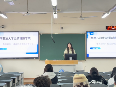 班会重点解读了《西南石油大学学生考试违纪、作弊处理办法》中的考试纪律“高压线”,明确作弊组织者、使用通讯设备作弊、替考与被替考等作弊、违纪行为将导致严重后果,倡导同学们拒绝违规诱因,共建风清气正的考场环境。此外,班会强调了网络言论规范,要求大家严守“不发布、不转发、不围观”涉政、涉敏及未经证实信息的“三不”原则。在安全管理方面,明确离校前需落实断水断电、贵重物品随身、完成离校登记等要求,强化最后一人离寝责任;寒假出行需遵守交通规则,拒绝黑车与超载车辆,全程系好安全带,校内骑行共享电动车需佩戴头盔、不载人,跨年期间尽量减少聚集,防范流感传播及踩踏风险。
