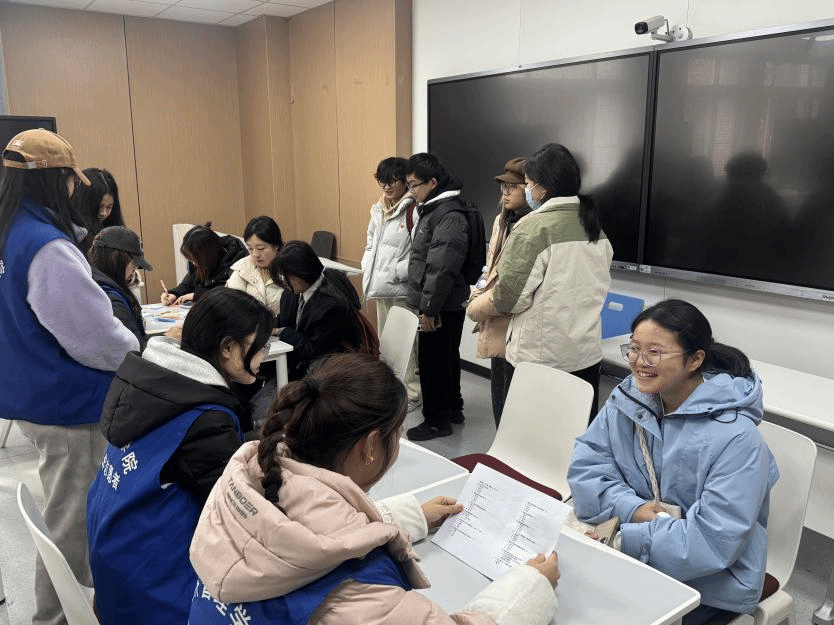 活动前期,团委青年实践指导中心通过西柿管家等平台发布活动宣传公告,吸引众多同学踊跃报名。活动现场,参与学生在工作人员的引导下有序入座,通过抽题形式开展趣味问答,系统掌握实践参与路径。问答环节结束后,同学们参与涂鸦签名创作,以手绘图案搭配个性签名,表达对“三下乡”实践的理解、认可与期待,展现出积极的参与热情。