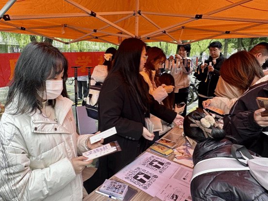 本次活动设置了多项趣味互动环节,形式新颖、内容充实,让同学们在轻松愉悦的氛围里感受文字的魅力。在祝福明信片交换区,同学们纷纷执笔抒怀,将藏在心底的真挚祝福、对生活的美好期许落于纸面,一张张写满温情的明信片在传递中串联起彼此的心意,陌生同学间的距离也悄然拉近。书签创作区同样人气高涨,大家精心挑选心仪的书签样式,将自己钟爱的诗句书写其上,或清新治愈,或热血励志,风格各异的书签被整齐悬挂起来,随风轻摆,成为活动现场一道独特的风景。
