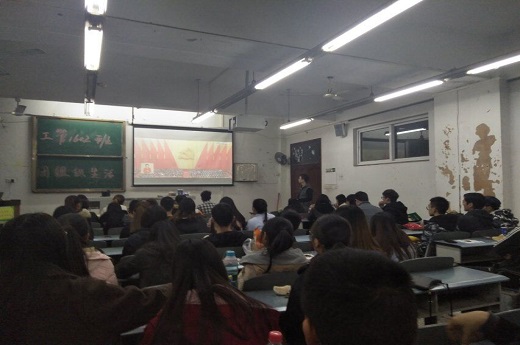 活动中,组织委员贺昊以PPT和视频的形式向同学们深入浅出地介绍了十九大相关内容,宣讲习近平主席讲话精神。在观看视频和学习讲话过程中,同学们积极地做笔记,并把平时对于十九大“闻而未思,思而不懂”的问题在团组织生活会上进行全班性地梳理与讨论。