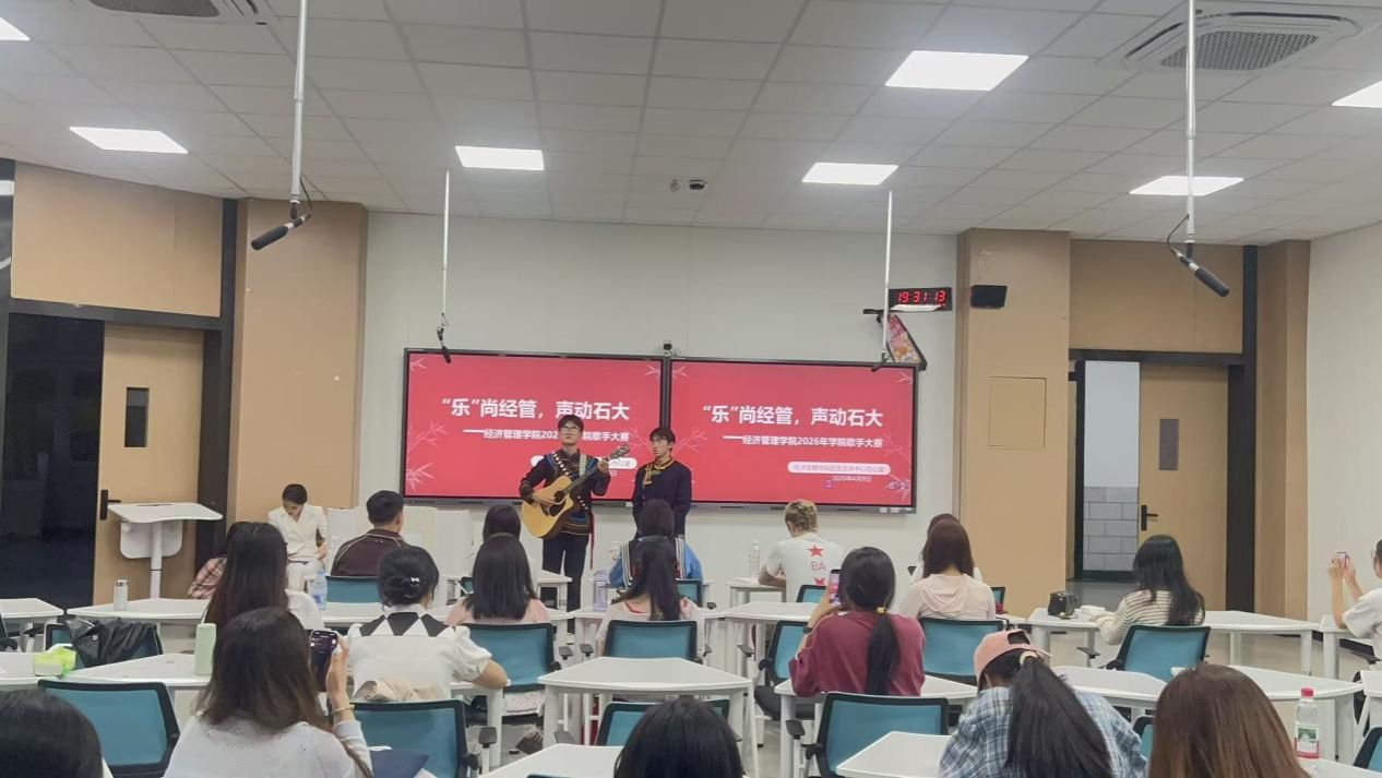 为丰富校园文化生活,展现经管学子青春风采,营造积极向上、朝气蓬勃的校园文化氛围,2026年4月9日19:00,我院“乐”尚经管,声动石大歌唱比赛在思学楼A107举办,圆满完成各项赛程并顺利落下帷幕。