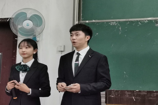 “进德修业”团队的主持人在进行知识竞答活动