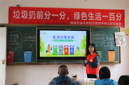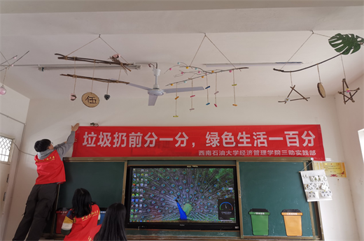 为了响应《四川省生活垃圾分类制度实施方案》以及西南石油大学大学生“进德修业”实践示范项目的号召,11月13日,西南石油大学经济管理学院三助部6位志愿者在四川省德阳市中江特殊教育学校开展了以“垃圾扔前分一分,绿色生活一百分”为主题的实践项目活动。志愿者们中午到达学校,通过与六年级班主任杜婷婷老师沟通后,他们了解到孩子们的基本情况,开始布置教室。