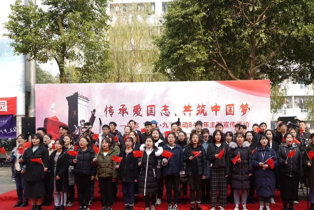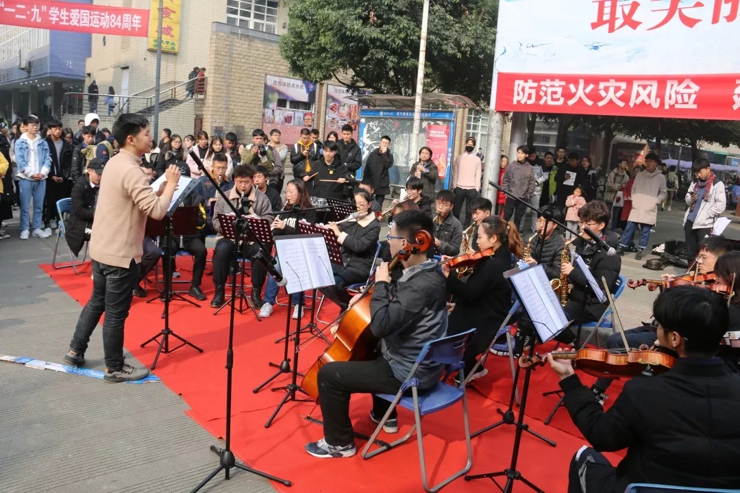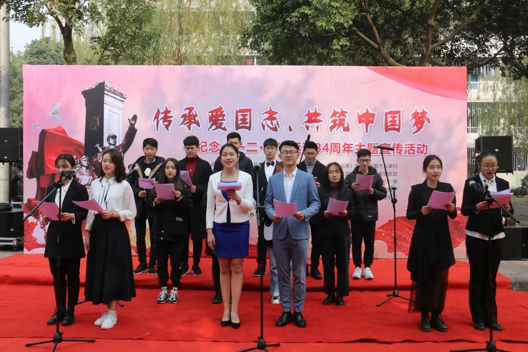 为深入学习贯彻习近平新时代中国特色社会主义思想和党的十九届四中全会精神,结合纪念“一二·九”运动84周年。12月9日中午,我校大学生艺术团在一食堂外开展纪念“一二·九”运动84周年主题展演。