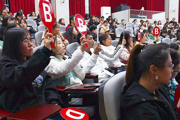 本次大赛还特意增加了观众互动环节,在场的观众可以竞答互动题目,并准备了小礼物送给回答问题的观众以激励观众踊跃答题,增强了比赛的趣味性。在场的气氛也变得更为活跃,竞答题目包括政治、历史等,较为全面的考查了在场学生的素质。