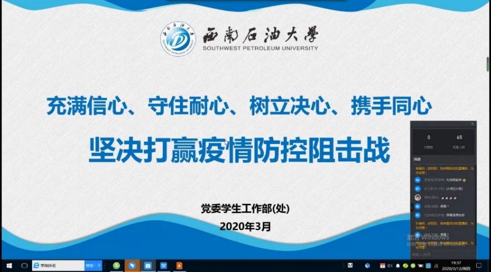 为了全面贯彻落实习近平总书记重要回信精神和推进疫情期间的防控工作,3月12日晚7点30分,经济管理学院全体研究生进行了“充满信心、守住耐心、树立决心、携手同心——坚决打赢疫情防控阻击战”线上主题班会。
