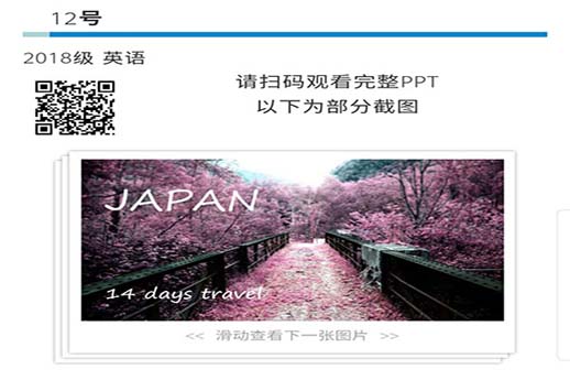 在旅游路线规划大赛的投稿阶段收到了许多优秀的作品,作品的内容形式多样,内容包含杭州、三亚、新疆以及日本等国内外各大旅游热点地区。上交的旅游路线规划作品形式丰富,包含文档,PPT、视频、H5等,其中还有全英文的作品。收集到的优秀作品被放到了官方微信公众号:西南石油大学旅游信息协会上,给大家共享同时投票。同学们可以通过旅协的微信公众号来鉴赏这些优秀的旅游路线规划方案。