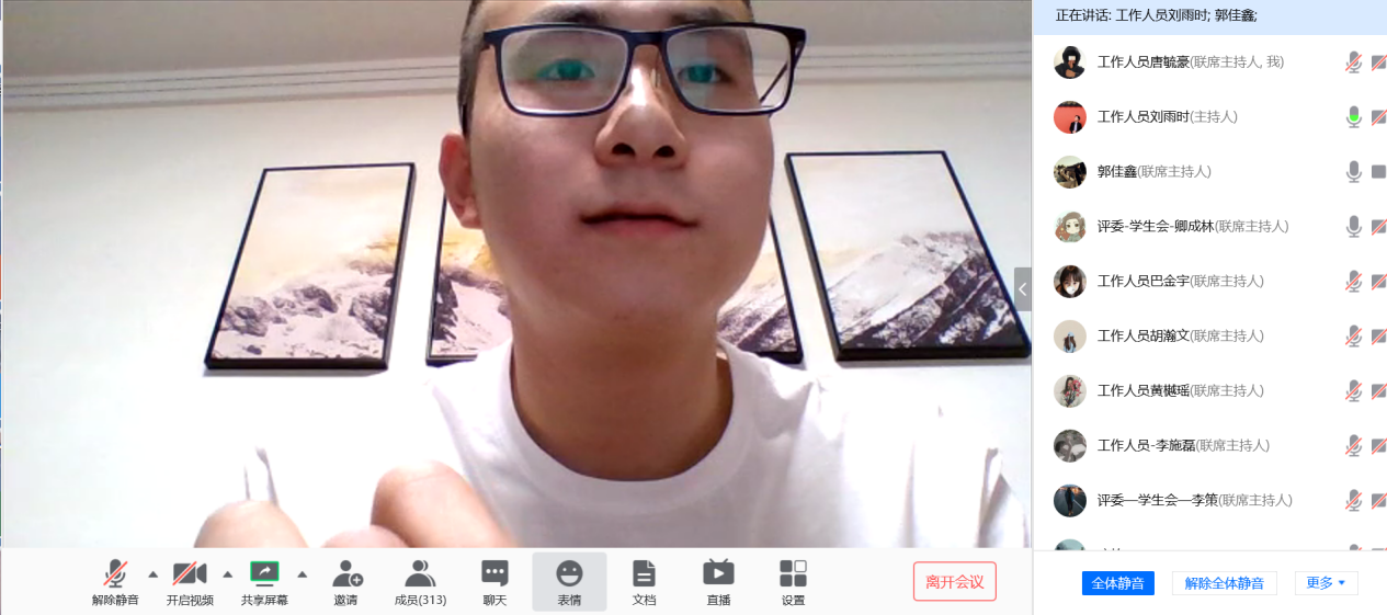 本次比赛以线上的形式进行,同时在西南石油大学学生会官方QQ空间同步直播,共计6000余人参与观看。校团委老师蒲彦羽、四川省学生联合会执行主席郭佳鑫学长作为嘉宾线上云观看,校学生会和各分院学生会代表担任评委。