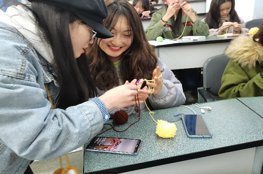 本次手工编织活动在主持人宣读安全预案声中拉开序幕。秉持着“钩针钩织喜悦,毛线编织温暖”的协会理念,活动现场每一位协会理事认真教学,参加活动的每一个女青年仔细学习钻研编织技术,本是杂乱无章的彩线在她们的手中“春蕾绽放”,变成了精致小巧的兔耳、鹿角、蝴蝶结。随后,活动现场组织参与同学共同分享探讨编织技巧,相互学习请教编织技术,并呼吁青年女性注重培养自我“发现美、创造美”的能力。这夜的c205教室,屋外是深蓝的夜,稀落的星辰衬着弯弯的月;屋内是明媚的光,青涩的手法编织出的不仅是手环,更是女性独立,文化传承的希望之光。