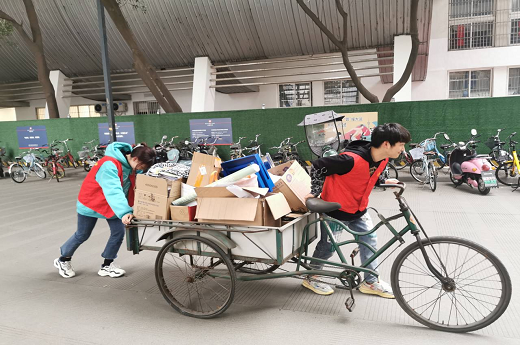 下午四点,志愿者们携带开户资料和称前往教师办公室,帮助老师清理平日残余废品纸张、回收损坏物品,将整理出的废品整理上称、按照不同废品分类,将相应重量转换为不同的积分,日后用于兑换办公用品等。老师们充分肯定了此次的环保银行志愿活动,并表示日后会继续支持此类活动,坚持废品回收、废品分类,为学院的绿色环保、废品利用工作献上自己的一份力。志愿者们在经过整理,分类后,将废品放进运输工具里再统一回收。