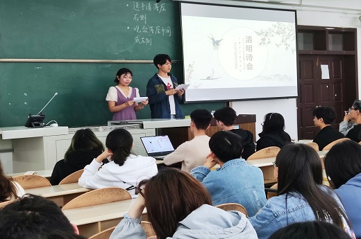 为庆祝清明佳节的到来,加强我院学风文化建设,吸引我校学生主动走进朗诵舞台,4月9日,我院于思学楼举办“清明诗会”朗诵比赛。该活动由初晖诗社主办,吟风文学社合办。比赛通过组织开展选手间的朗诵比赛与丰富多彩的文学游戏,向同学们宣传中华传统文化,传播文学知识。