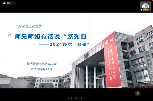 为了鼓励我院研究生积极参与学术活动,并在交流与分享中提升科研能力,我院研究生会于2021年4月22日下午14:30分在腾讯会议线上召开了“师兄师姐有话说”科研经验分享大会。研究生辅导员徐余跃作为本次会议的主持人,邀请了2019级物流工程专业的孙逸林和2019级管理科学与工程专业的蒲泱竹两位同学分享自己的科研历程和心得体会,我院全体研究生积极参与了本次会议。