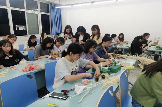 活动开始前,馨艺手工协会工作人员对材料进行分组并分配,以保证活动正常进行。19点时,本次活动在主持人陶静宣读活动预案中拉开帷幕。本次活动秉持着“节约资源,废物改造”的理念,所有材料均来源于募集生活废品。为了让同学们更好得了解旧物改造,主持人通过PPT向现场观众展示了以“坚果壳立体小动物”、“干花饰品”等为代表的往届旧物改造优秀作品。