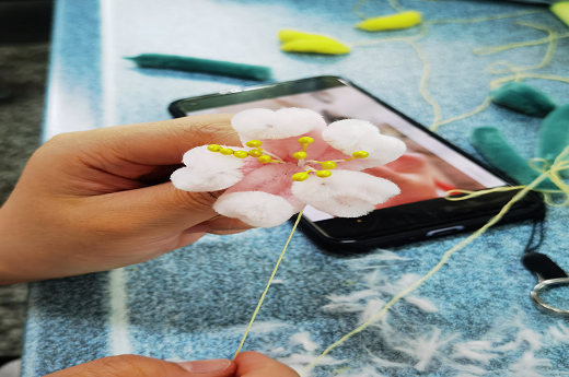 本次活动通过让学生们参与仿绒花发簪的手工制作过程的形式,让同学们深入了解中华传统文化之美,在细碎柔美的材料中沉浸于奇妙的东方魔力。
