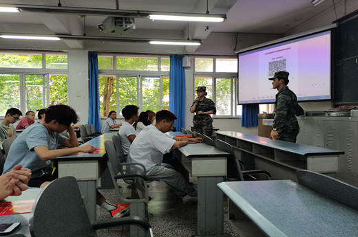 退役军人以自身经历讲述军营生活和在校入伍优势以及征兵政策的宣讲,帮助同学们更加直观的了解到征兵相关政策和投身军营的益处,激发了广大青年学生关心国防建设,踊跃参军报名、保家卫国的热情。(撰稿人:徐韩 王宇旖 审稿人:张思 审批人:曾有为)