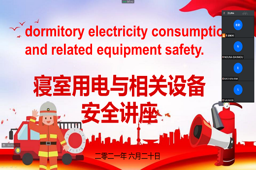 2021年6月20日,针对我校经济管理学院留学生开展了主题为“寝室用电及相关设备安全教育”的线上法纪法规和安全教育活动。