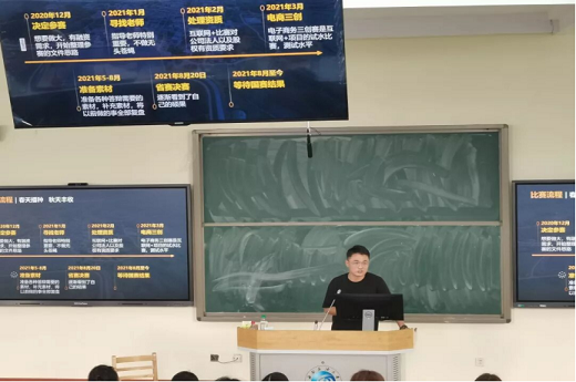 为帮助大一新生对互联网+比赛有一个初步的了解,提前了解企业项目,我院于11月11日在思学楼B110开展商业策划分享会,我院2019级电子商务专业张洋主持此次分享会。