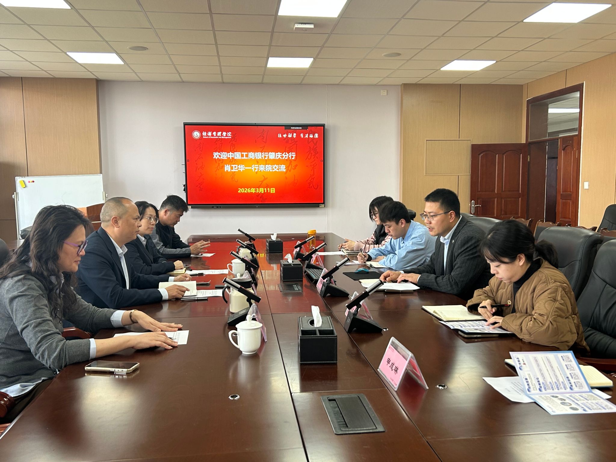 为深化“访企拓岗促就业”专项行动,拓宽校企协同路径,3月11日,中国工商银行肇庆分行一行莅临我院,围绕学生高质量实习就业开展洽谈。学院党委副书记、纪委书记罗昌龙,团委副书记、学工办副主任冉玉嘉及专职辅导员王紫、申成琳、陈宏霞出席洽谈会。
