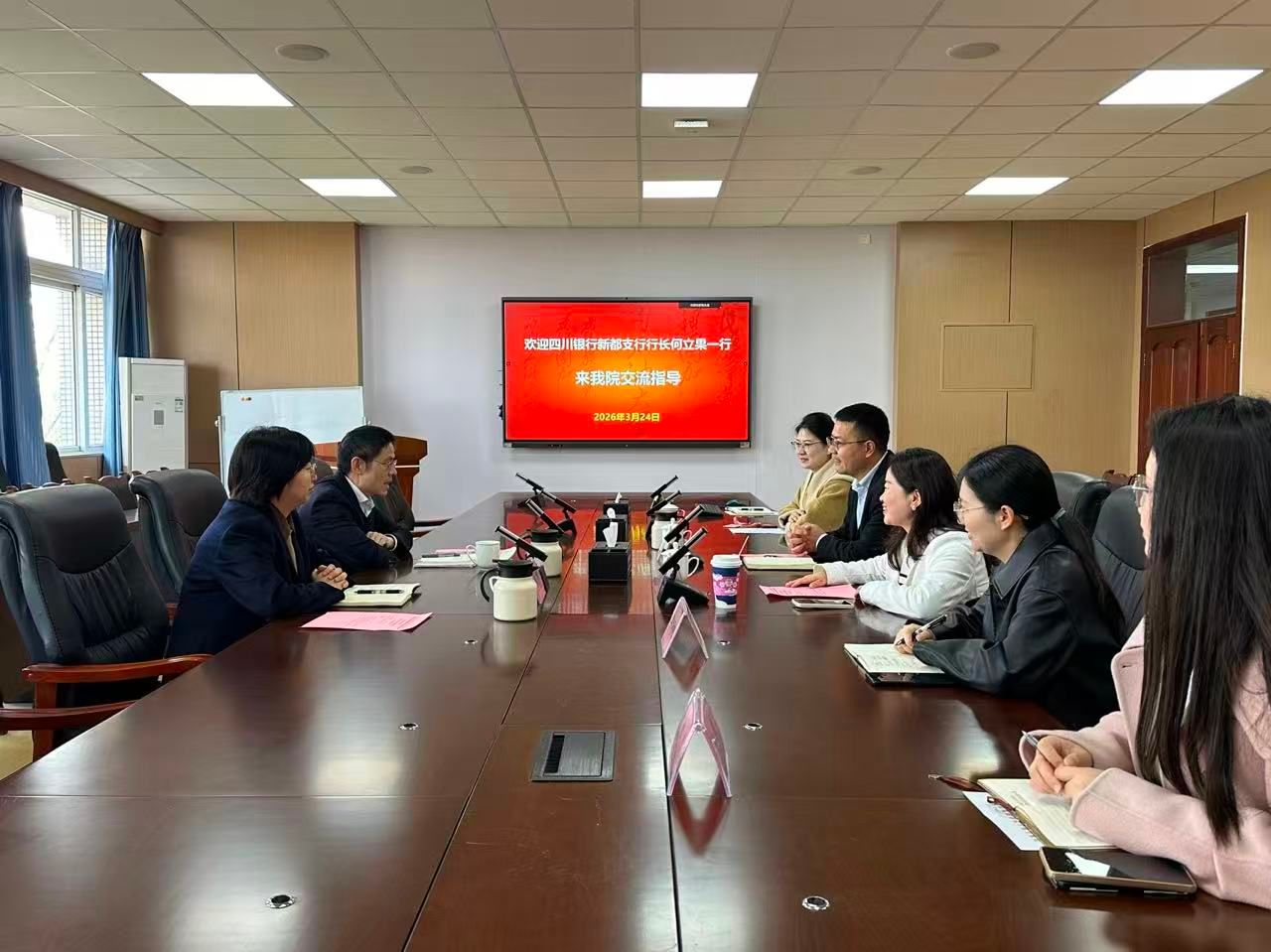 为深化“访企拓岗促就业”专项行动,拓宽校企协同路径,3月24日,四川银行新都支行行长何立果一行莅临我院,围绕学生高质量实习就业开展洽谈。学院党委副书记、纪委书记罗昌龙出席洽谈会,市场营销教研室主任梁琳主持会议。