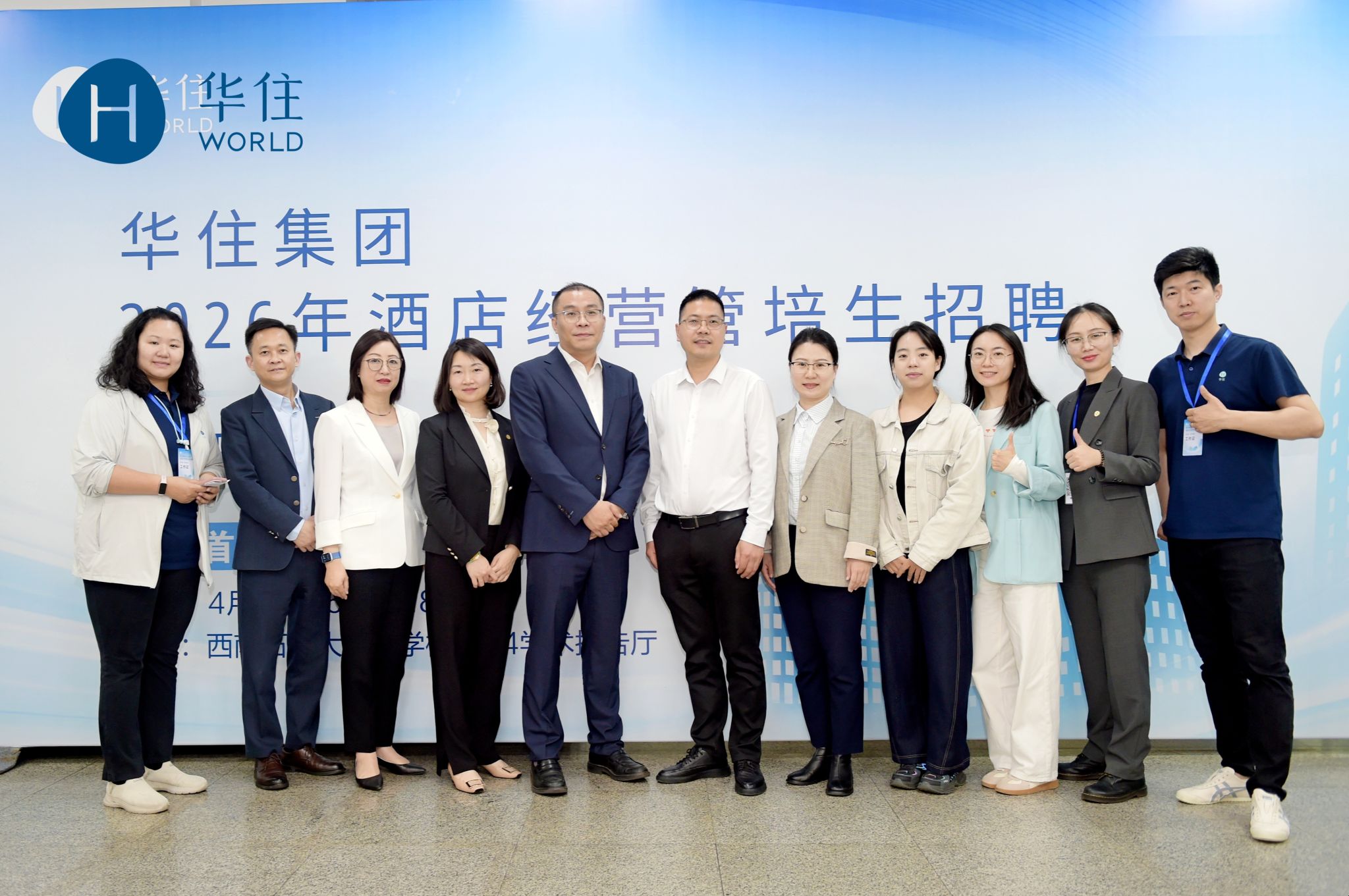 为深化校企协同育人,助力学生高质量就业,4月16日,学院在思学楼A114举办华住集团2026年酒店经营管培生四川省首场宣讲及招聘会,学院党委副书记纪委书记罗昌龙、企业各区域领导一行团队出席。