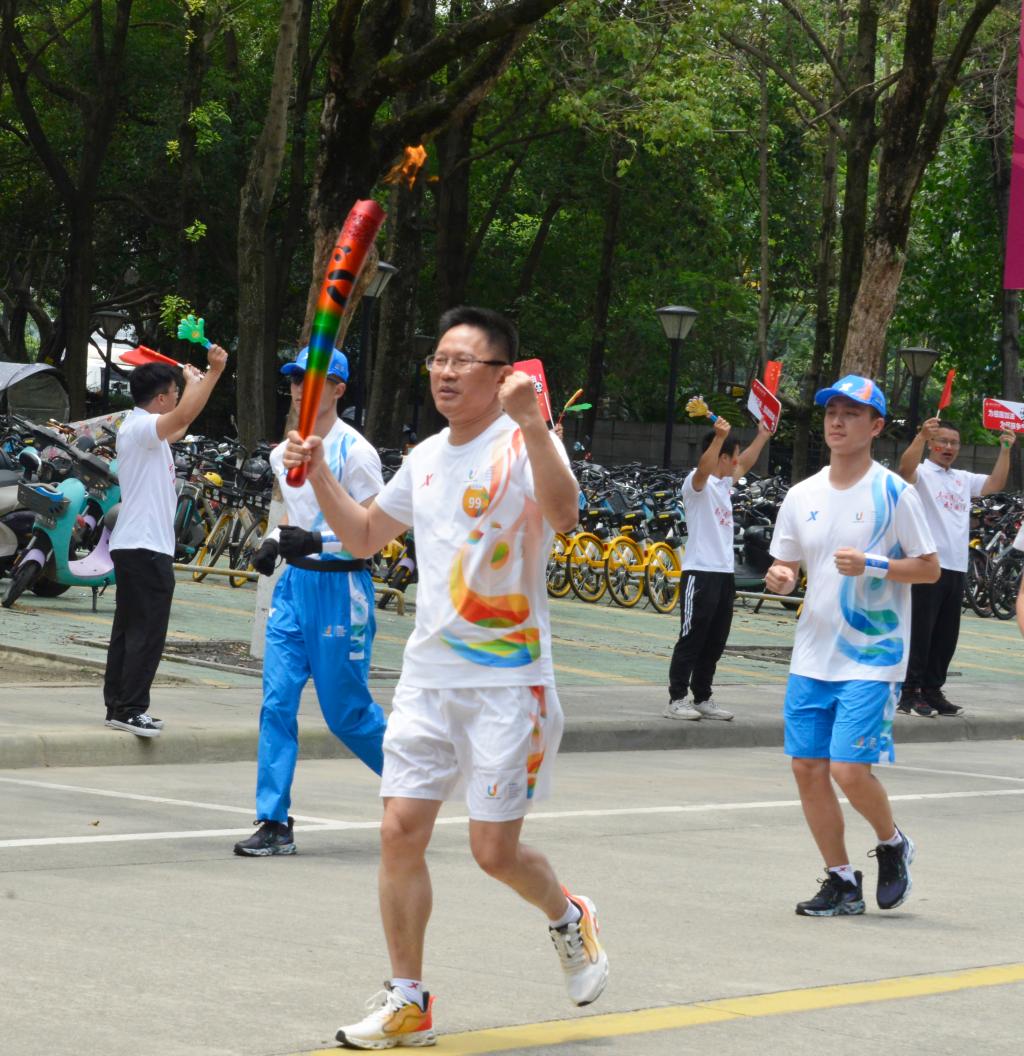 来自体育、教育、能源、科技、民航、医疗等多个领域的31名火炬手在我校传递了大运会火炬,其中有6人是我校师生和校友。排球国家级运动健将、四川男排原队长、我校体育学院教师杨光担任第94棒火炬手,能源央企优秀员工代表、中石油四川销售公司总经理、我校研究生2009届校友陈清担任第99棒火炬手,联合国难民署“光背后的女孩”爱心大使、我校2023届博士生孙倩担任第106棒火炬手,国际军事比赛金牌获得者、全国最美大学生、我校经管院2023届本科生刘宸担任第109棒火炬手,我校优秀学生代表、外国语学院2023届本科生冯思雨担任第111棒火炬手,全国道德模范提名奖、中国青年五四奖章获得者、我校党委宣传部网络思政与舆情信息科科长李凯担任第124棒火炬手。此外,我校体育学院教师乔伟卓、艺术学院2019级学生曹玉蕊作为护跑手参加了火炬传递。