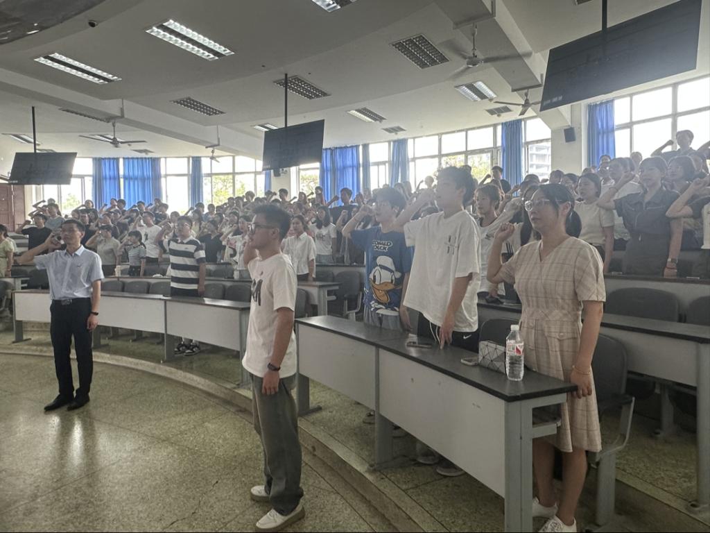 最后,毕业生代表王宇豪带领全体毕业生党员重温了入党誓词,全体成员举起右手,紧握拳头,面对鲜红的党旗,重温入党誓词,表达坚定理想信念,励志献身祖国,建功新时代的决心。
