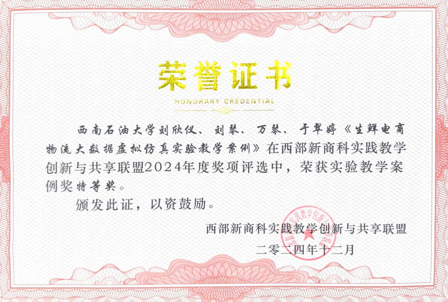 大会设立了“联盟年度实验教学奖”“联盟年度实验教学案例奖”,以表彰在推动一流专业建设、深化实践教育教学改革中做出杰出贡献的单位和个人。我院在两项奖项中,均获得特等奖。其中刘琴荣获实验教学奖特等奖、刘欣仪等提交的案例《生鲜电商物流大数据虚拟仿真实验教学案例》荣获实验教学案例奖特等奖。