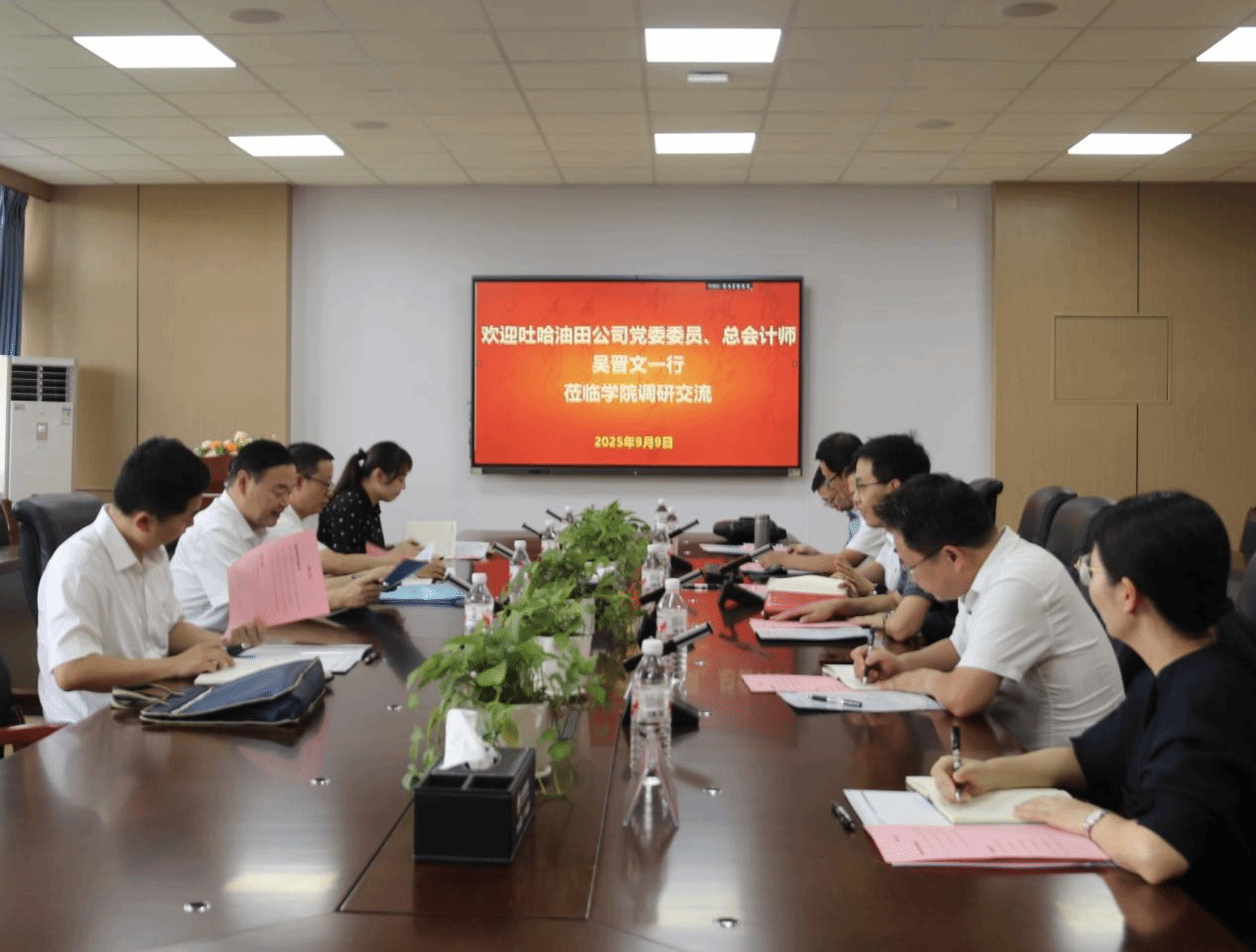 9月9日,中国石油天然气有限公司吐哈油田分公司党委委员、总会计师吴晋文一行,在博学楼B403会议室开展交流,会议由学院党委书记曾有为主持。