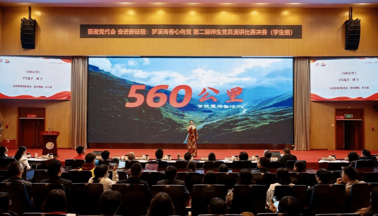 演讲比赛紧扣“青春心向党”主题,融合学校67周年校庆与能源报国使命,旨在通过演讲形式强化师生党员的思想淬炼与担当意识。比赛中,申成琳结合育人实践与岗位职责,以真挚的情感和生动的案例,诠释了“为党育人、为国育才”的初心。刘宇在冉玉嘉老师指导下,以“560公里”成长路为主线,动情讲述从甘孜炉霍到石大的求学之旅,诠释了在党的政策滋养下,从“走出大山”到“回报家乡”的初心使命,展现了经管学子听党话、跟党走的赤子情怀。
