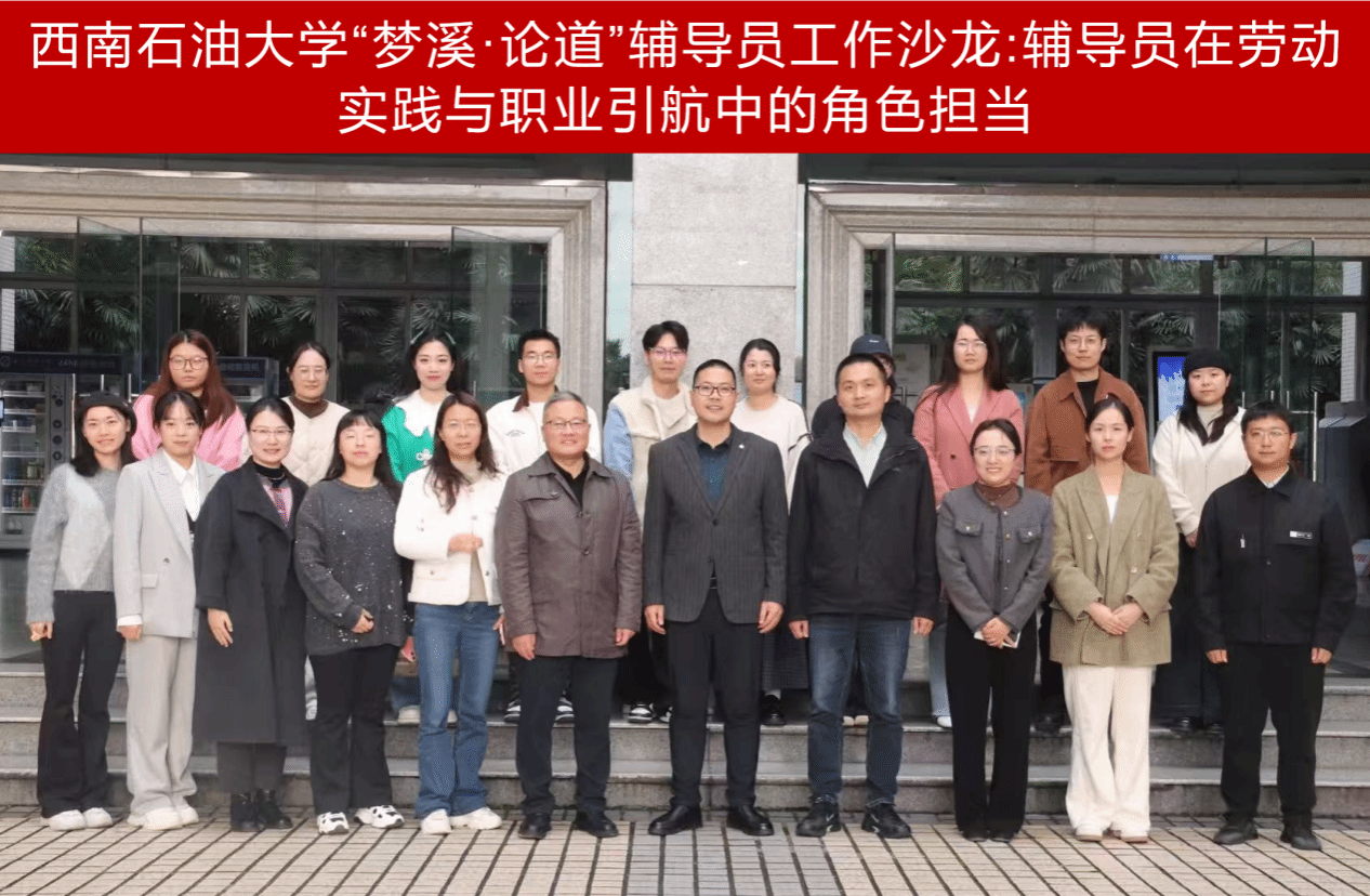 11月7日下午,由党委学生工作部(处)主办,经管院承办,红心“职”引省级辅导员名师工作室、“嘉行”劳动教育校级辅导员名师工作室协办的第13期“梦溪·论道”辅导员工作沙龙在博学楼B403举办,活动以“辅导员在劳动实践与职业引航中的角色担当”为主题,探索新时代劳动教育与生涯教育的创新实践与育人模式。成都理工大学数学科学学院党委副书记、纪委书记谷照亮,西华师范大学历史文化学院党委副书记、纪委书记何良伟,我校学工队伍代表参加沙龙交流,经管院党委副书记、纪委书记罗昌龙主持沙龙。