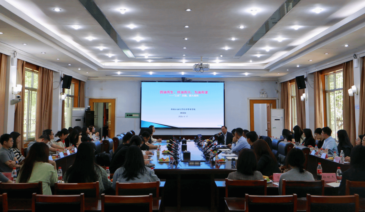 4月17日上午,由党委教师工作部主办、经济管理学院承办的“梦溪讲坛” 第八讲在南充校区通讯楼会议室举行。经济管理学院应用经济学学科带头人胡国松教授以“因油而生、伴油而兴、为油而谋——‘三史’交融,薪火相传”为题,为学院新进教师代表讲解新中国油气史、校史与院史,重温学校“为祖国加油,为民族争气” 的精神内涵。南充校区党委副书记、常务副校长覃鸿飞,经济管理学院党委书记曾有为出席讲坛。