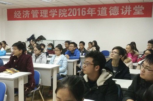 12月9日晚,经管院2016年道德讲堂在博学楼B407举行,经管院党委书记任皓和辅导员严旭出席本次活动。