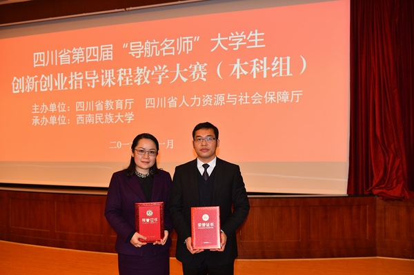 在11月8-11日举行的四川省第四届“导航名师”大学生创新创业指导课程教学大赛(本科组)中,我校经济管理学院郑小强老师和创新创业学院李婕老师分获一、二等奖,并各自获得一万元和六千元奖金。这是我校在历届“导航名师”比赛中取得的最好成绩,也是本届比赛唯一同时收获一、二等奖的学校。