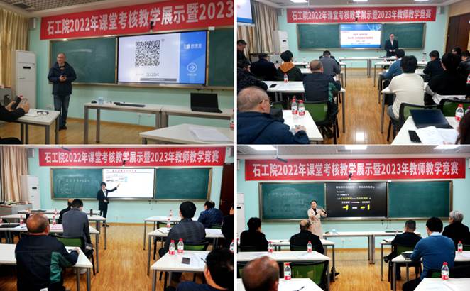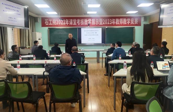 为激励教师对本科教学工作的投入和热情,锤炼教师教学基本功,提升教学能力和水平,提高教育教学质量,3月6日至7日,石工院在明理楼C1201举行2022年课堂考核教学展示暨2023年教师教学竞赛。校长助理、教学评估处(教师教学发展中心)赵刚,教务处处长廖柯熹,党委教师工作部(人才工作办公室)副部长、人事处副处长彭炎,院领导、督导专家、教授委员会成员受邀担任评委,评委组长由李晓平担任。竞赛由副院长卞小强主持。