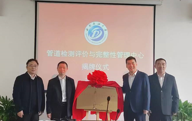 李勇明和舒江为管道检测评价与完整性管理中心揭牌