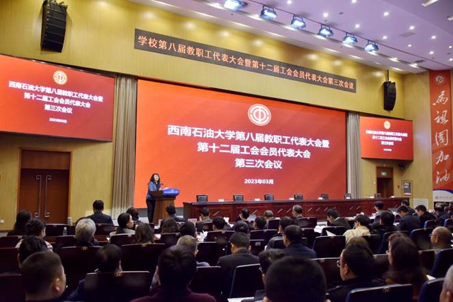 3月22日上午,我校在图书馆学术报告厅隆重召开西南石油大学第八届教职工代表大会暨第十二届工会会员代表大会第三次会议,本次教代会是在深入落实党的二十大精神,学校深入实施“十四五”发展规划、新一轮“双一流”建设方案背景下召开的一次重要会议。我院正式代表、列席代表和特邀代表参加会议。