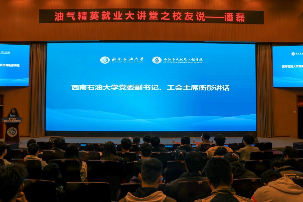11月22日晚,首届全国基层就业卓越奖获得者、中国石油塔里木油田公司油气运销事业部轮南油气储运中心管道队副队长、油气储运2015级校友潘磊回校做客油气精英就业大讲堂,在图书馆报告厅开讲,学校党委副书记、工会主席衡彤,招就处副处长肖友平,石工院党委副书记、纪委书记钱广出席,各学院学生代表500余人参加,活动通过飞书同步直播。