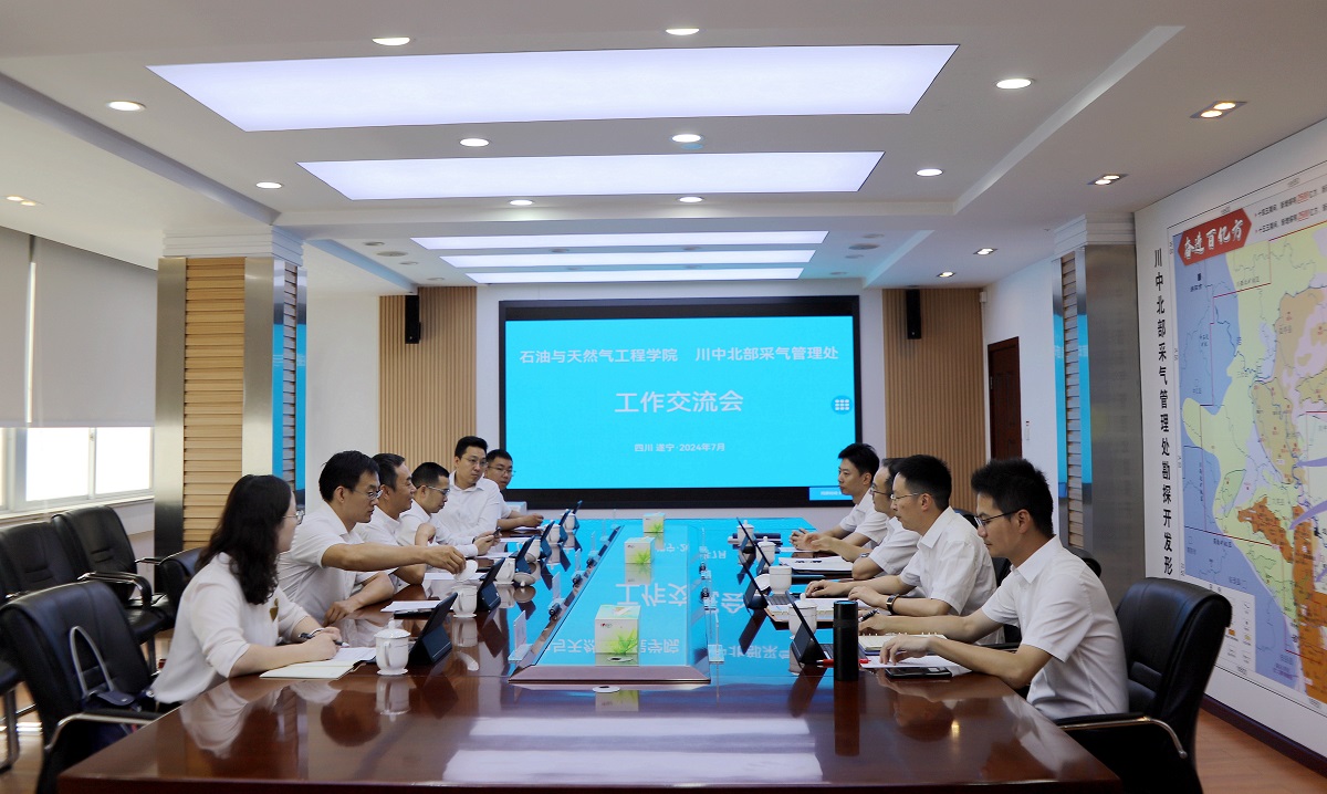 在西南油气田川中北部采气管理处,工作组与管理处总经理许深皓一行进行座谈交流,双方就各自单位情况进行了简要介绍。会上,曾明友对管理处的数字化油田建设成效以及在座各位校友取得的成绩表示祝贺,双方就进一步深化校企合作的具体合作项目和开展计划进行了交流讨论,并签署了党建“1+1”联盟共建协议。
