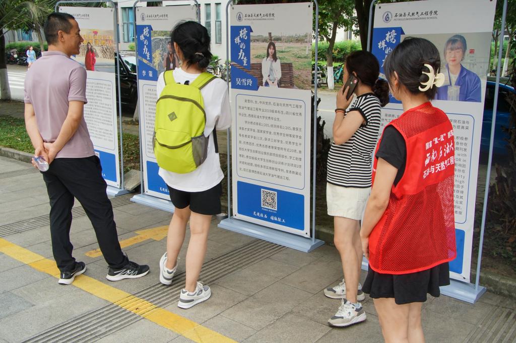 “学长学姐们都好优秀,我也想成为他们那样‘闪闪发光’的人。”来自云南的海油工程专业新生寸勔祺同学在优秀毕业生事迹展板前久久站立,用坚定的语气说到。