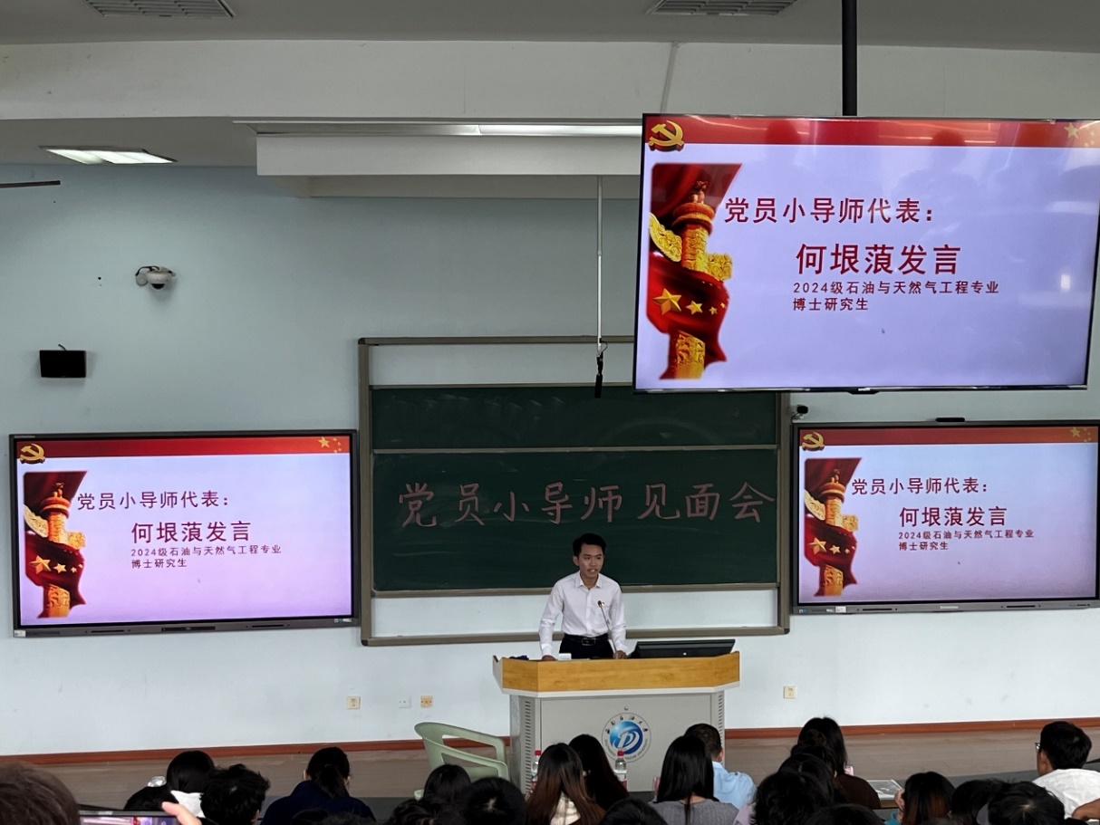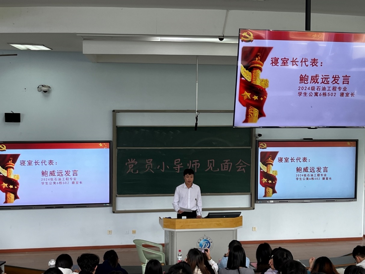 为进一步加快推进“党建+学生社区”,切实发挥好学生党员传帮带作用,助力2024级新生成长,10月10日,石工院在思学楼C210召开党员小导师见面大会。学院党委副书记、纪委书记钱广,2024级新生辅导员谢诗雪,2023级辅导员、学生公寓党员工作站指导教师肖雨桐,全体党员小导师及新生寝室长参加大会。