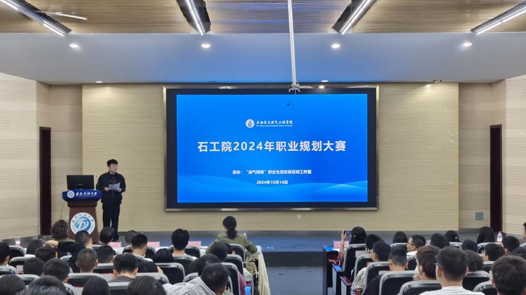 为加强生涯教育和就业指导,增强大学生生涯规划意识,指导其及早做好就业准备,促进毕业生高质量充分就业。2024年10月14日晚,石工院2024年职业规划大赛在明志楼B105顺利举行。本次大赛由 “油气精英”职业生涯发展咨询工作室主办,新都区人才发展服务中心主任、区委人才办常务副主任徐士棚,石工院党委副书记、纪委书记钱广,招就处大学生职业规划指导中心主任张亦弛,计科院团委书记陈力平,新材院辅导员廖爱羚担任评委,全体指导老师出席,大一、大二200余名学生代表到场观摩学习。